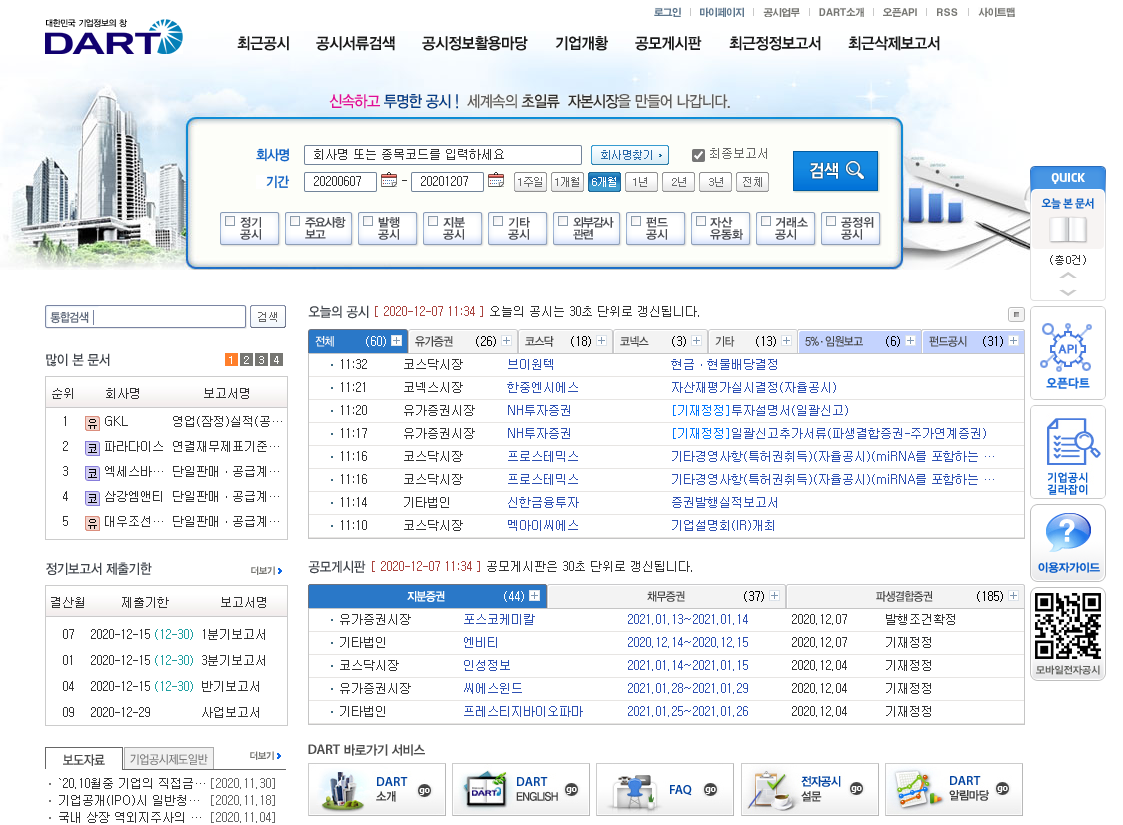 한국의 상장, 비상장사의 관련 자료를 볼 수 있는 곳입니다.
