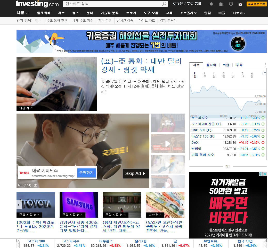저는 이 사이트를 통해서 환율과 전 날의 미국 시장 흐름을 파악하여