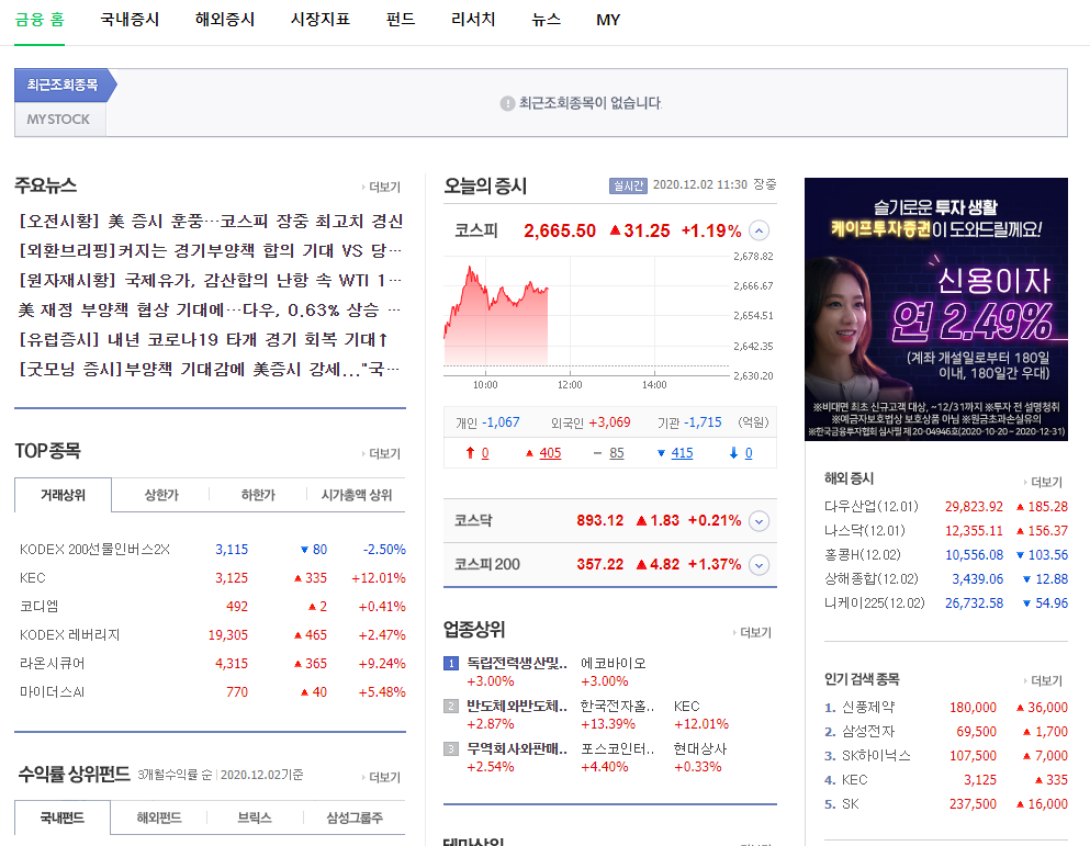기업에 대한 정보, 뉴스, 시세 등을 제일 쉽게 확인할 수 있는 사이트입니다.
